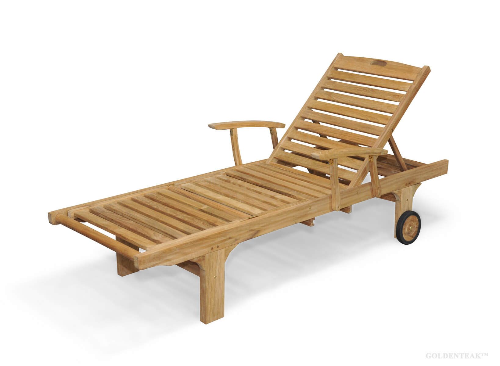 Teak sunbed with removable table and wheels Very well made.
