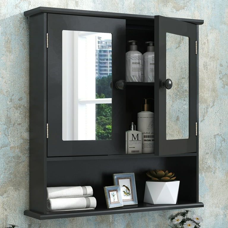 TaoHFE Wall Mounted Wooden Medicine Cabinet with Mirror 2 Doors 3 Open Shelves Walmart Very well made.