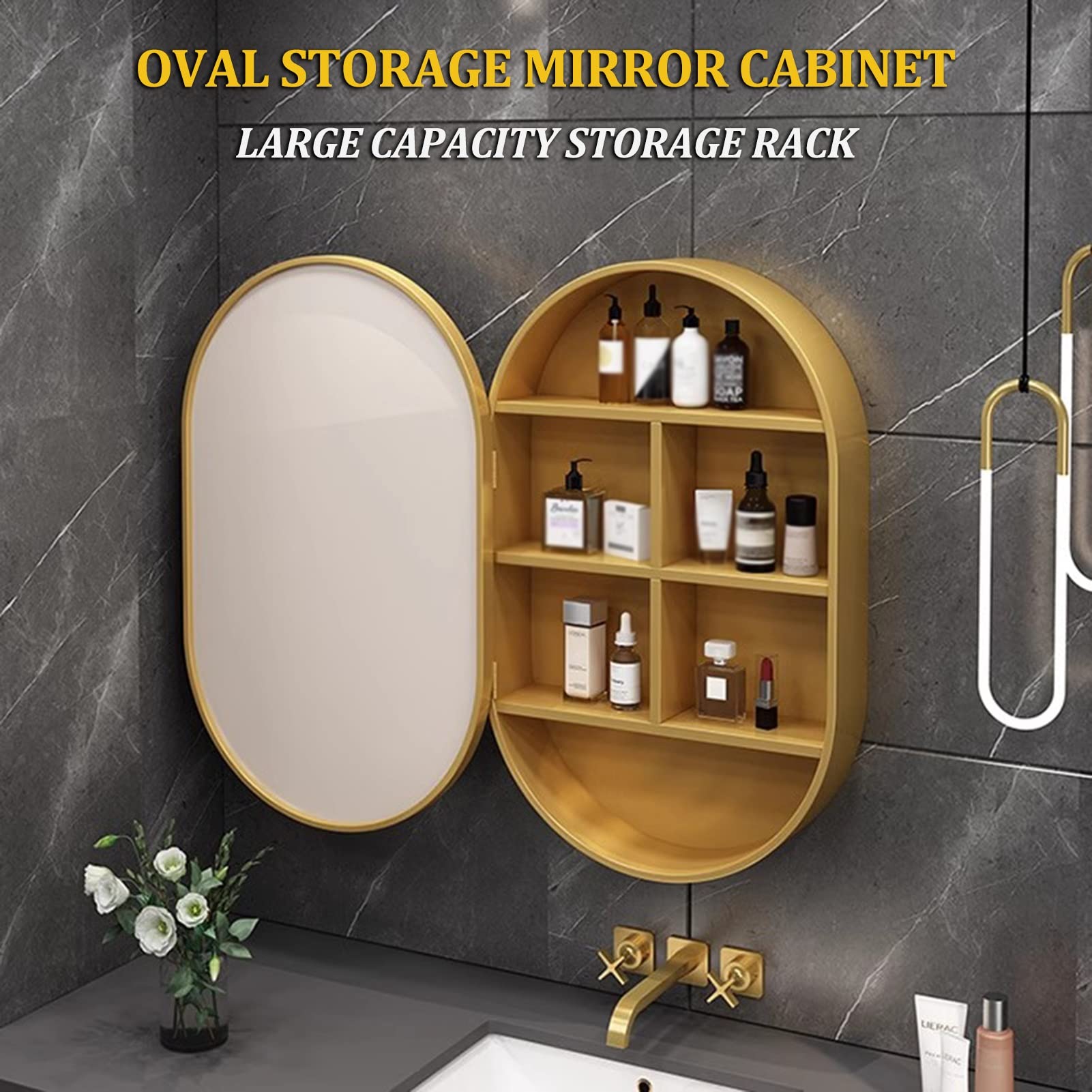 Amazon Oval Bathroom Mirror Cabinet Led Medicine Cabinet Wall Mounted Recessed Mirror Cabinet with Light with Storage Shelf Color Gold Size 50x14x80cm Home Kitchen Very well made.
