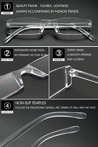 VEVESMUNDO Reading Glasses Men Women Modern Slim Transparent Rimless Eyeglasses Reading Glasses 20 Packs 3.0 Very well made.
