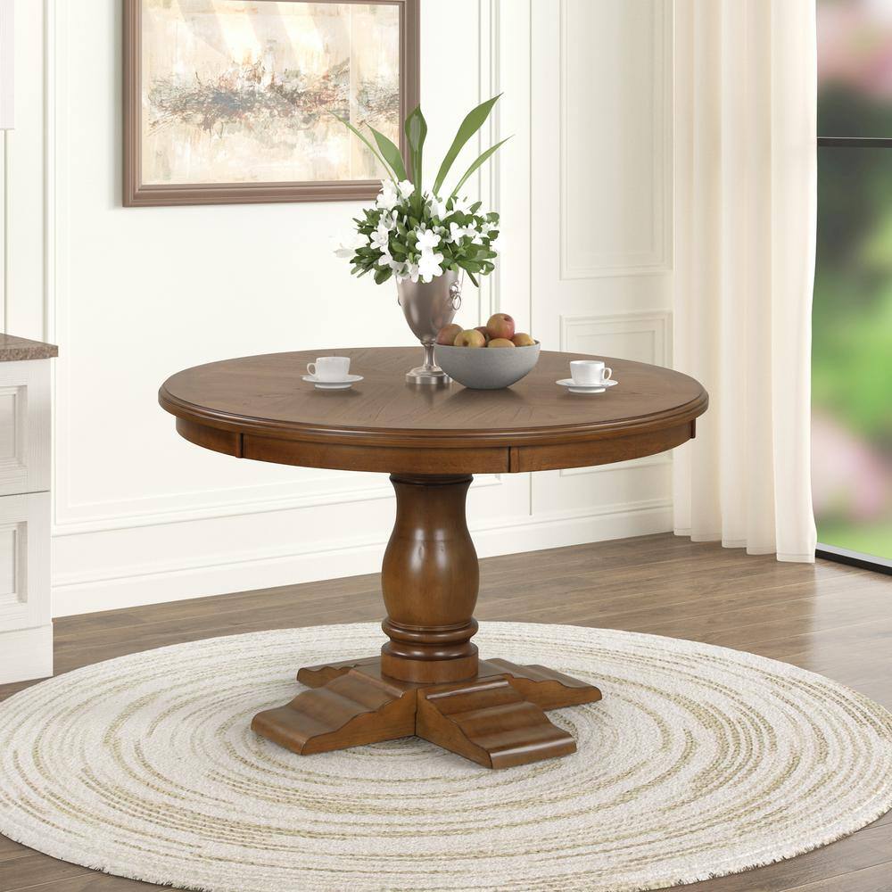 NEW CLASSIC HOME FURNISHINGS New Classic Furniture Sunset Brown Wood 48 in. Pedestal Round Dining Table Seats 4 D5398 11 The Home Depot Very well made.