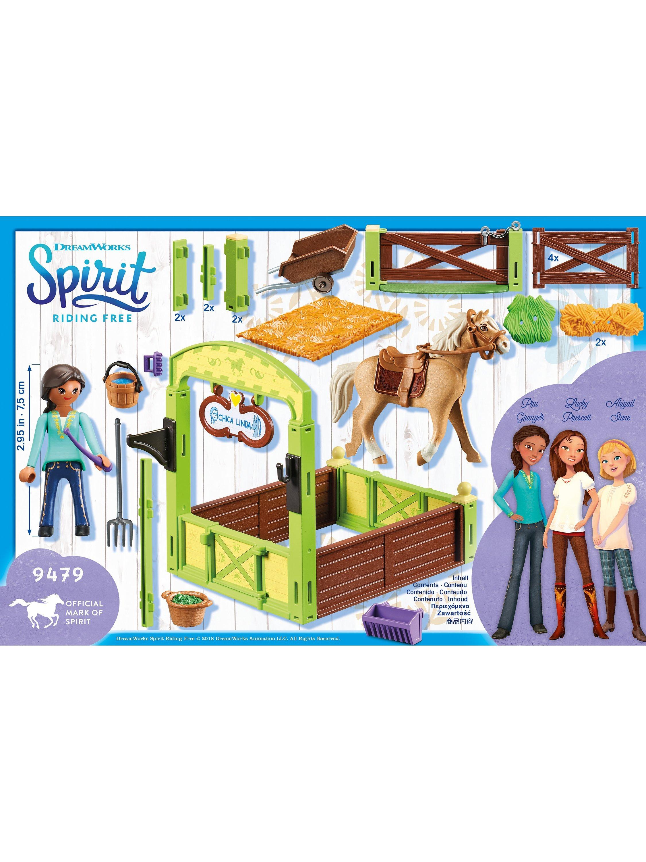 Playmobil Dreamworks Spirit Riding Free 9479 Pru And Chica Linda With Horse Stall Very well made.