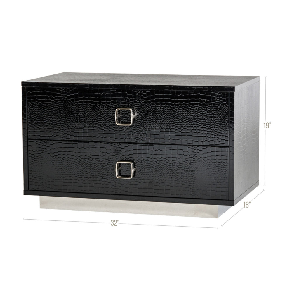 Hart 32 Inch Nightstand 2 Drawers Crocodile Skin Texture Lacquer Black BM301315 Very well made.