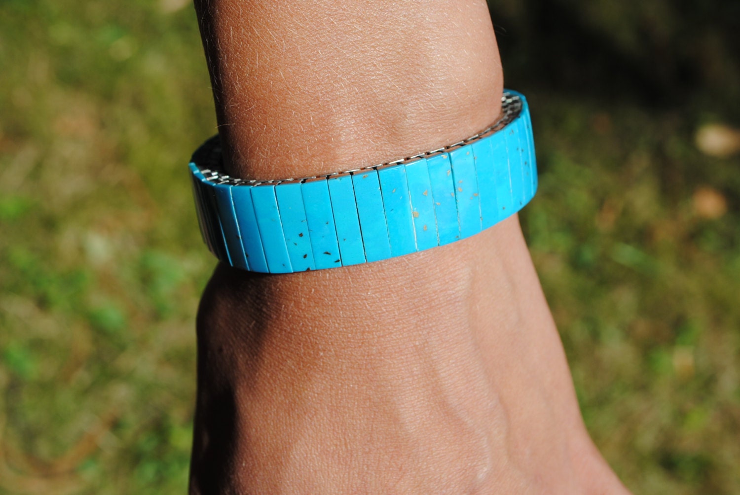 Turquoise extensible bracelet stretch turquoise bracelet vintage turquoise bracelet Very well made.