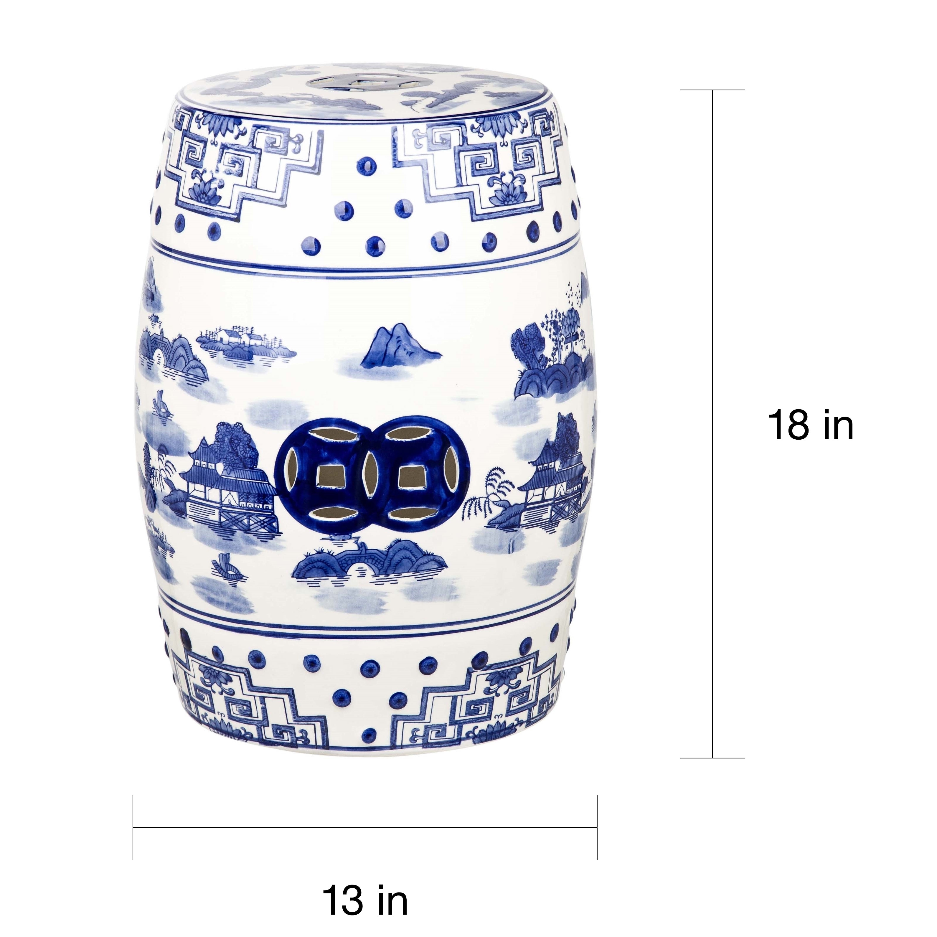 Chinoiserie Garden Stool Elegant Blue and White Porcelain Accent Pe English Elm Very well made.