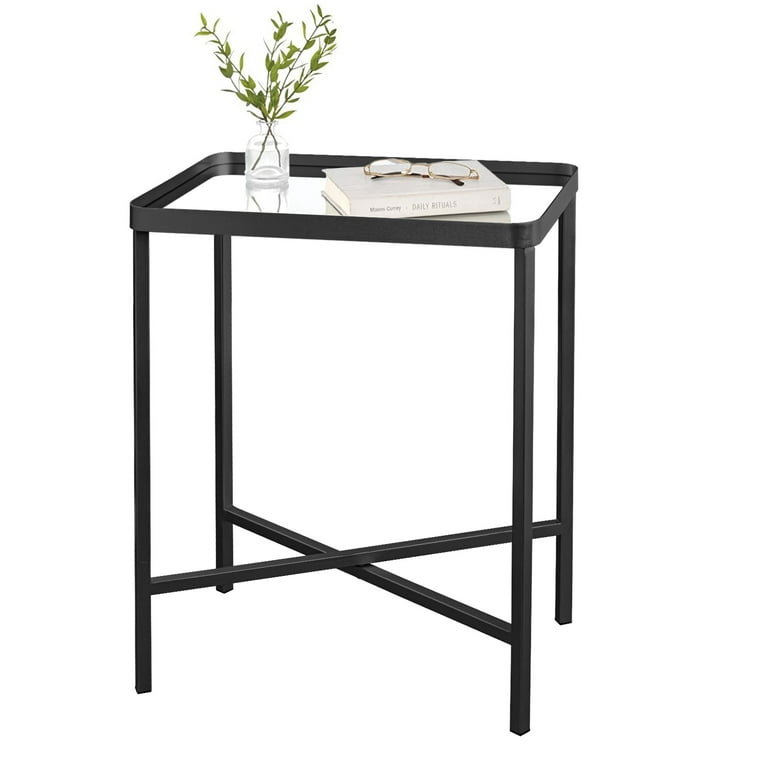 SeekElegant Black Side Table Narrow End Table with Mirrored Top Modern Rectangular Side Table Metal Coffee Accent Table Bedside Table Nightstand Very well made.