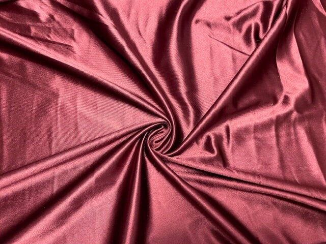 Maroon Satin Stretch Knit 18 240 GSM Shiny 2 Way Stretch Fabric Polyester Spandex Casino Apparel Craft Fabric 58 60 Wide By Yard Very well made.
