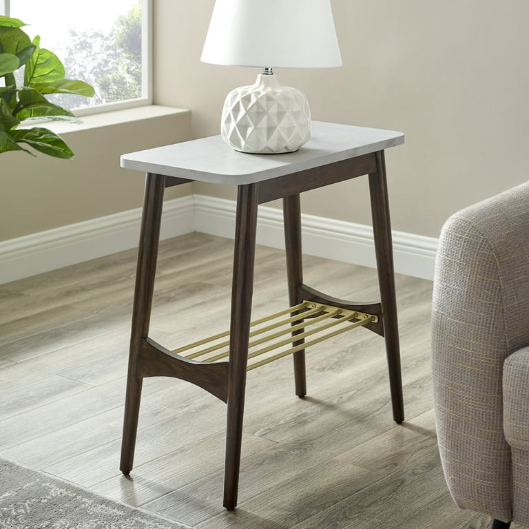 Manor Park Mid Century Modern End Table White Faux Marble Brown Oak Very well made.