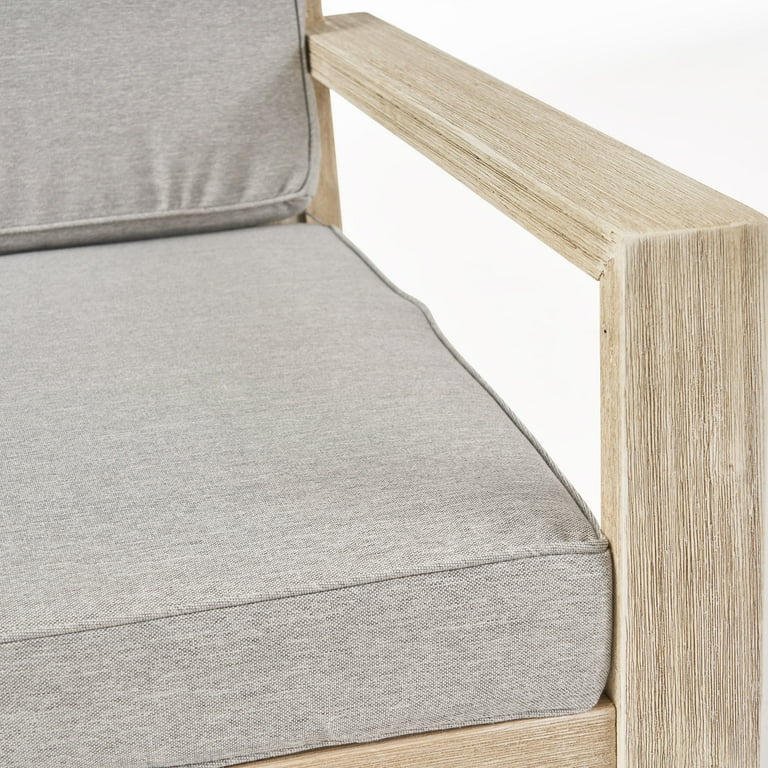 Amazon GDFStudio Outdoor 3 Seater Acacia Wood Sofa Sectional with Cushions Wire Brushed Light Gray Wash Cream Patio Lawn Garden Very well made.