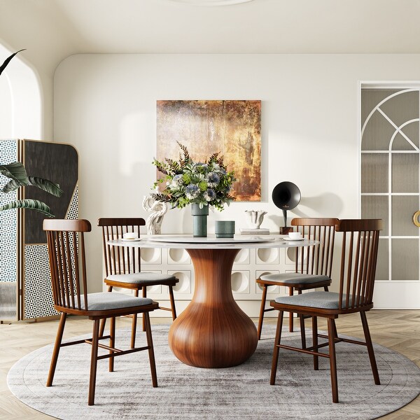 Draper Walnut Mid Century Modern Round 59 Pedestal Dining Table Very well made.