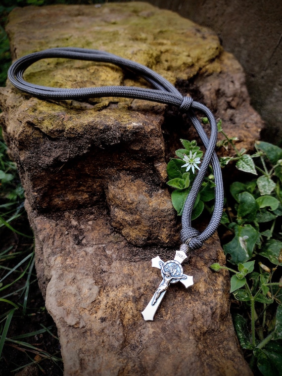 Unbreakable Necklace Crucifix Latin Miraculous Medal 3 Knot Charcoal Gray Paracord Etsy Very well made.