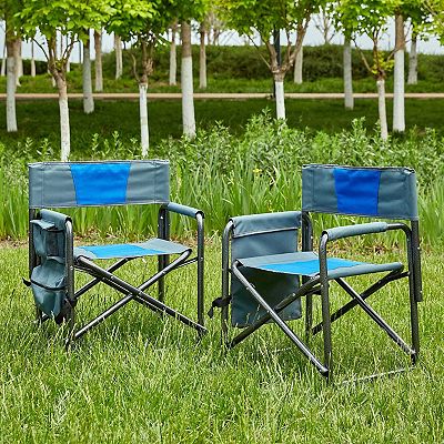 2 Piece Padded Folding Outdoor Chair with Storage Pockets Blue Grey Very well made.
