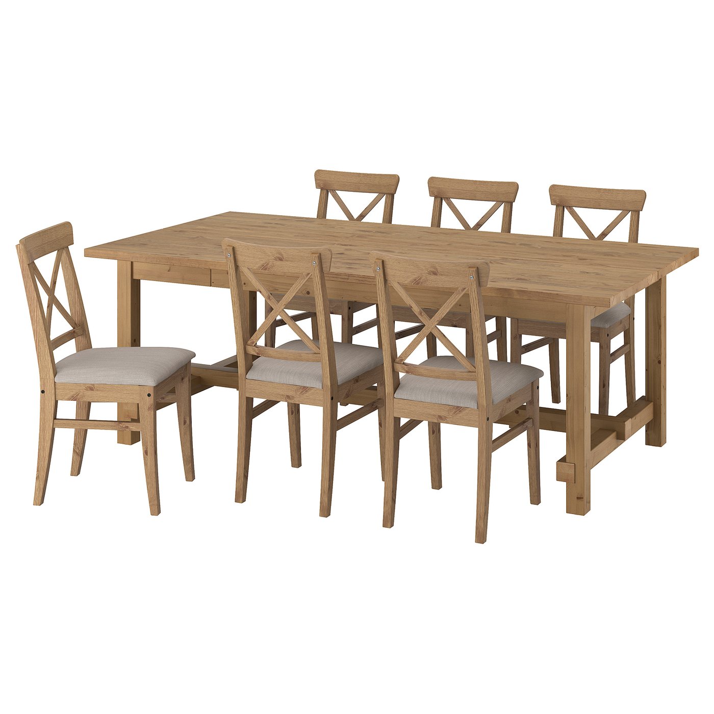 NORDVIKEN INGOLF table and 6 chairs antique stain Nolhaga grey beige antique stain 210 289 cm IKEA Germany Very well made.
