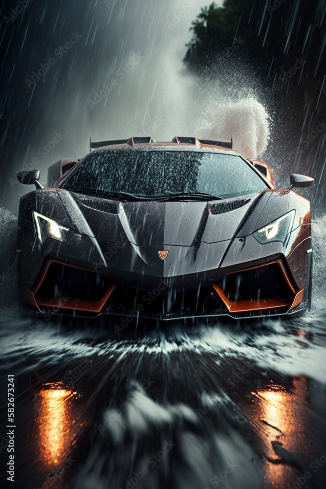 illustration super car on wet super speed road ai generative Very well made.