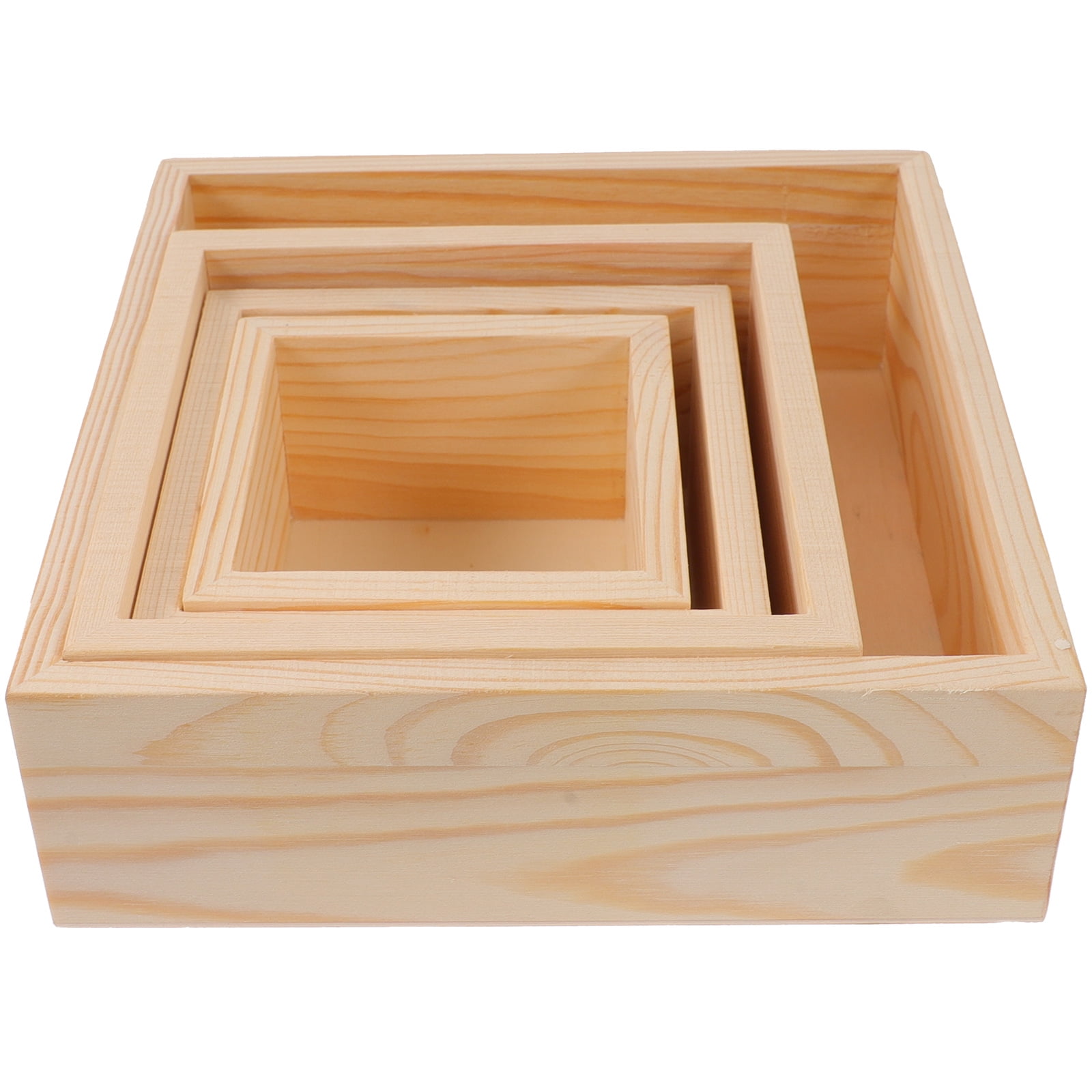 Wooden display box 4pcs Unfinished Wooden Boxes Rustic Square Wood Box DIY Craft Storage Organizer Walmart Very well made.