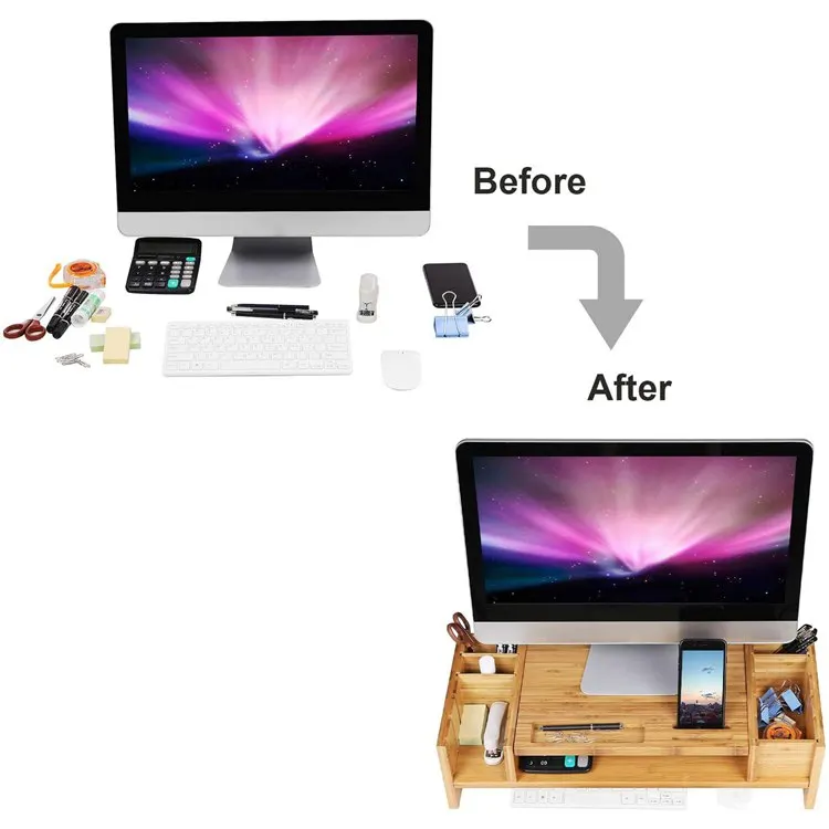 SONGMICS Supporto per Monitor in bambu Naturale per Scrivania con Vani Portaoggetti per Laptop TV PC Lavoro da Casa LLD211N Amazon Informatica Very well made.