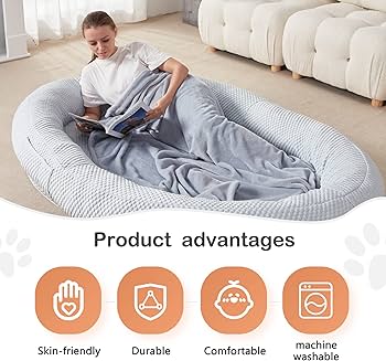 Bean Bag Chair Bed for People Bean Bag Bed Human Size Large Bean Bag Bed for Adults Pets with Blanket 72 x 48 x 10 Light Blue Amazon Home Kitchen Very well made.