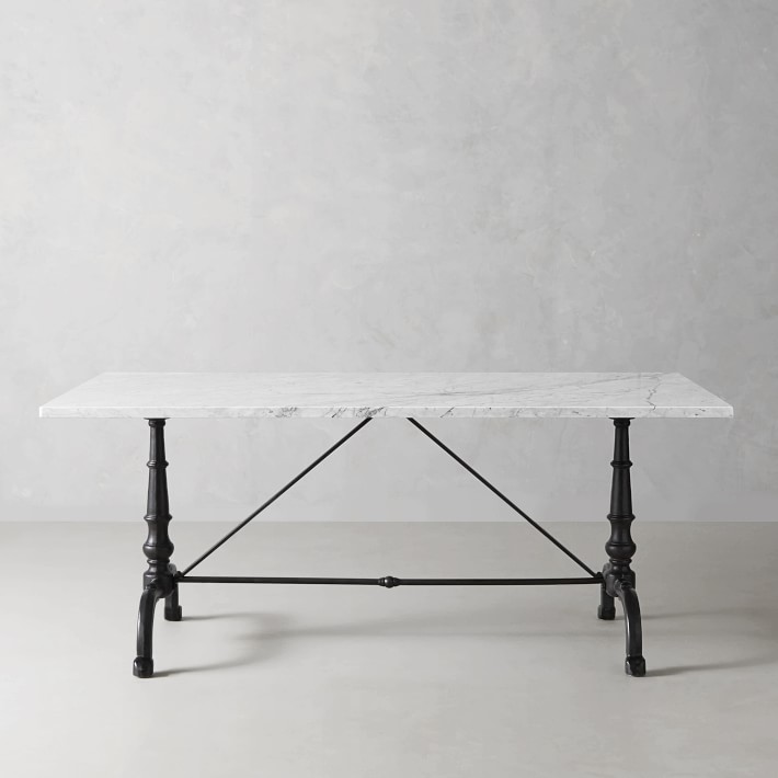 French Bistro Table With Painted Wrought Iron Base and Marble Top StandoutSpaces Very well made.