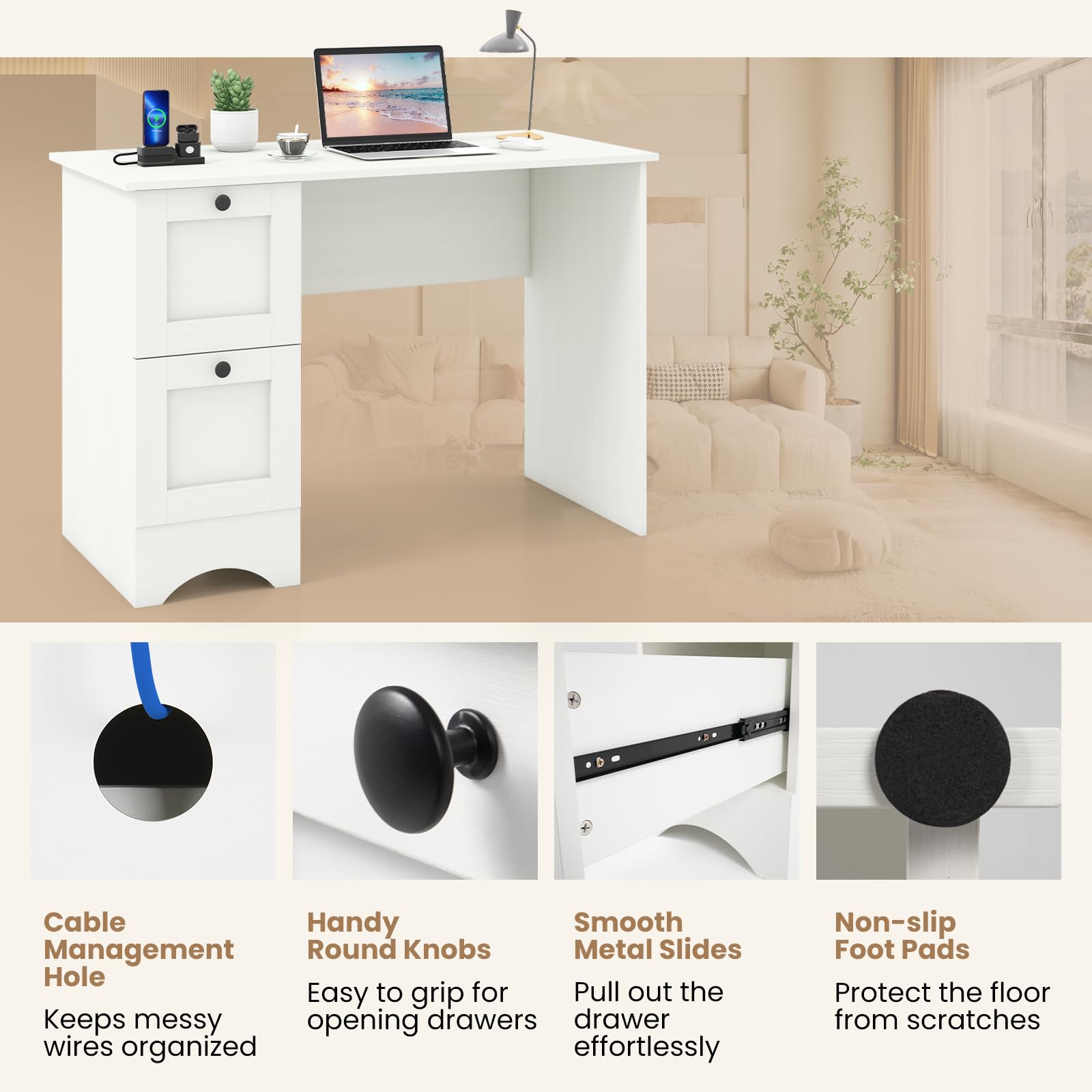Amazon Tangkula White Desk with Drawers Charging Station Wooden Home Office Desk PC Laptop Notebook Desk Compact Study Desk Writing Desk Very well made.
