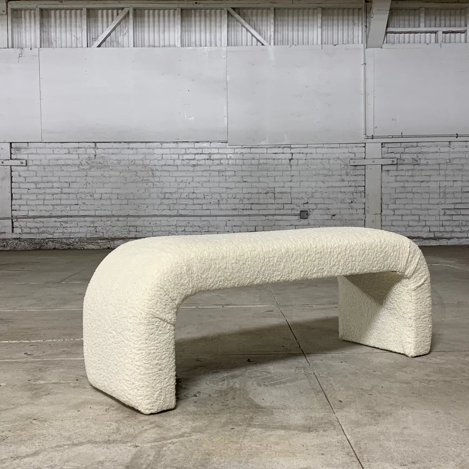 Boucle Fabric Upholstered Waterfall Bench with Wood Legs Very well made.