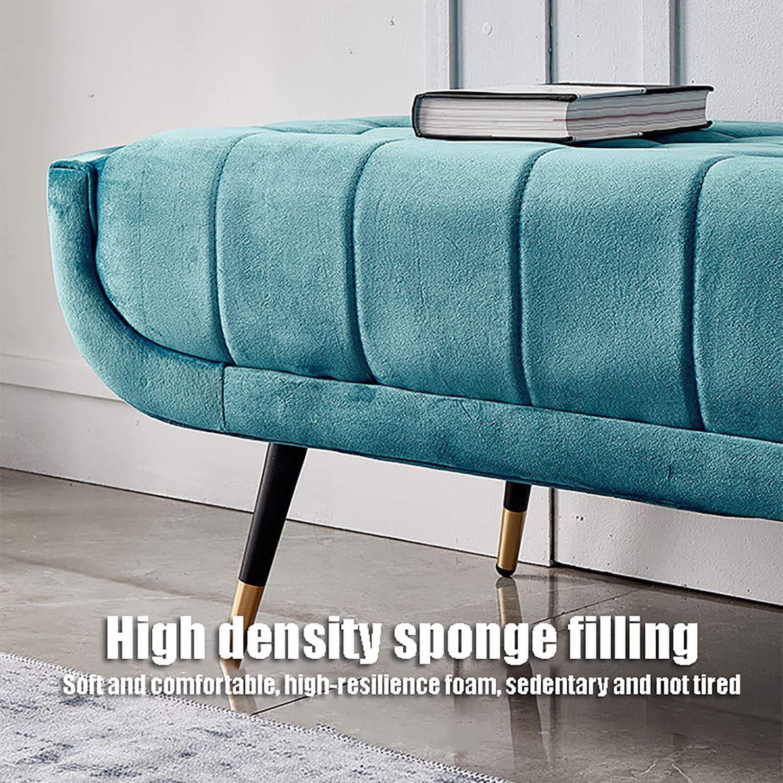 Velvet Bench Seat for Bed Ends Padded Shoe Bench with Golden Legs Extra Long Tufted Ottoman Benches Comfortable Tufted Footrest Stool Accent Bench Very well made.