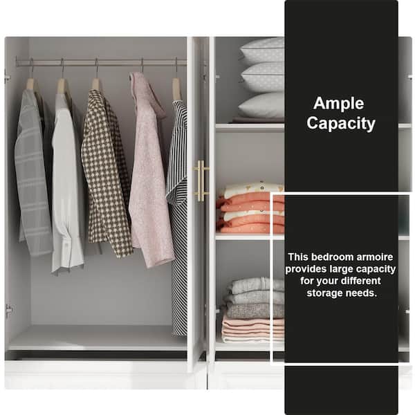 FUFU GAGA White Wood 63 in. W 4 Door Big Wardrobe Armoires with Hanging Rod Drawers Storage Shelves 74.2 in. H x 20.6 in. D KF250023 012 The Home Depot Very well made.