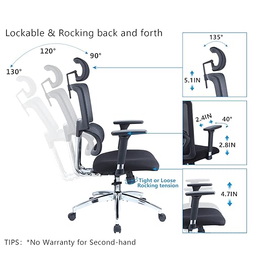 Ticova Ergonomic Office Chair High Back Desk Chair with Elastic Lumbar Support 3D Metal Armrest 130 Reclining Rocking Mesh Computer Chair with Thick Seat Cushion Rotatable Headrest in Very well made.