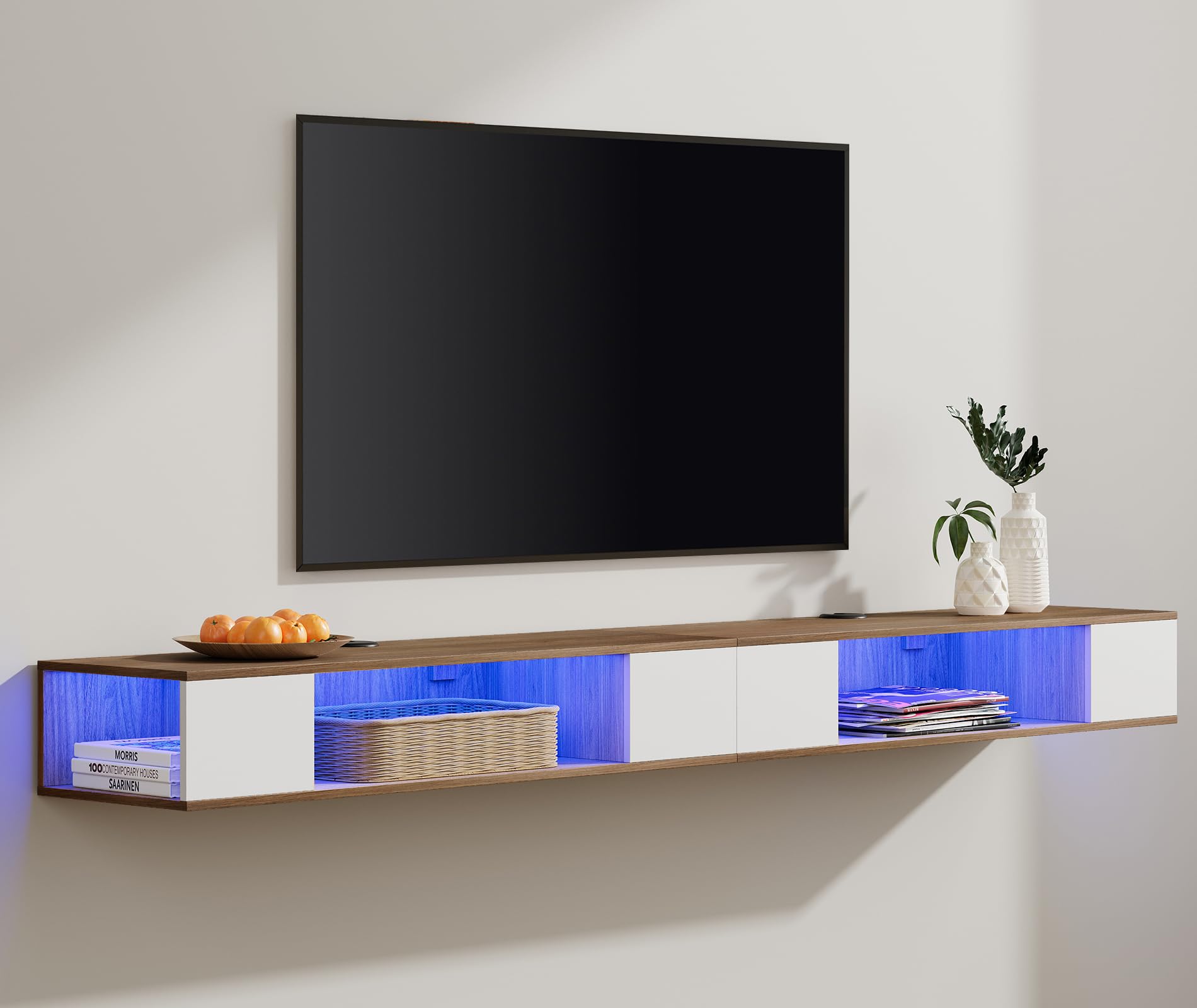 Amazon WAMPAT 80 inch Floating TV Stand for TVs Up to 85 inch Floating Entertainment Center Wall Mounted with Blue Light Floating TV Media Very well made.