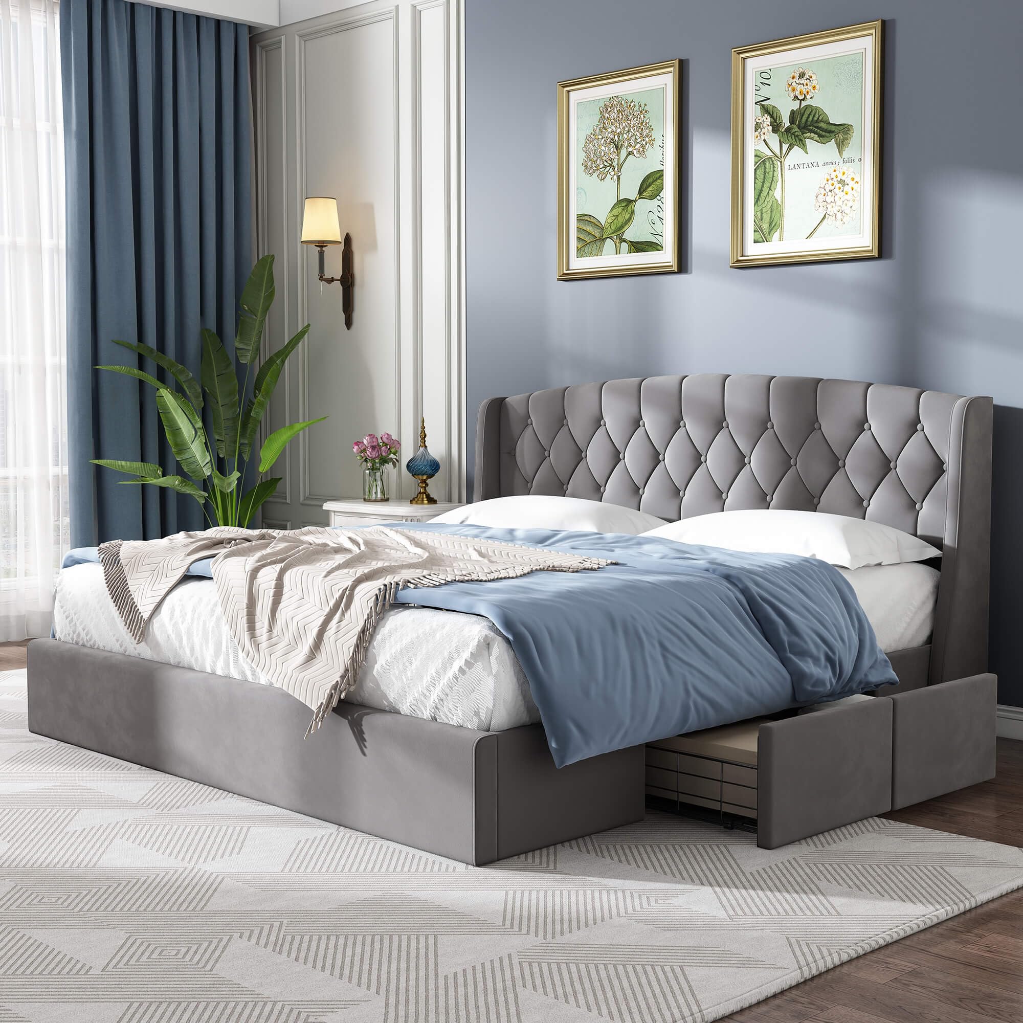 Becag Double Bed 160 x 200 cm Upholstered Bed with Drawers Storage Space Bed with Slatted Frame Storage Bed Backrest Bed Youth Bed Underbed Very well made.