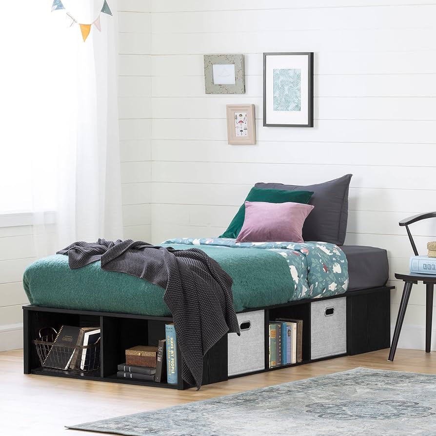 South Shore Flexible Bed with Baskets Contemporary Platform Twin Black Oak and Taupe Amazon Very well made.