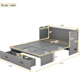 Gray Low Profile Queen Sized Murphy Bed w 2 Drawers USB Ports NEW IN BOX Retails for 800 Beds Bed frames Very well made.