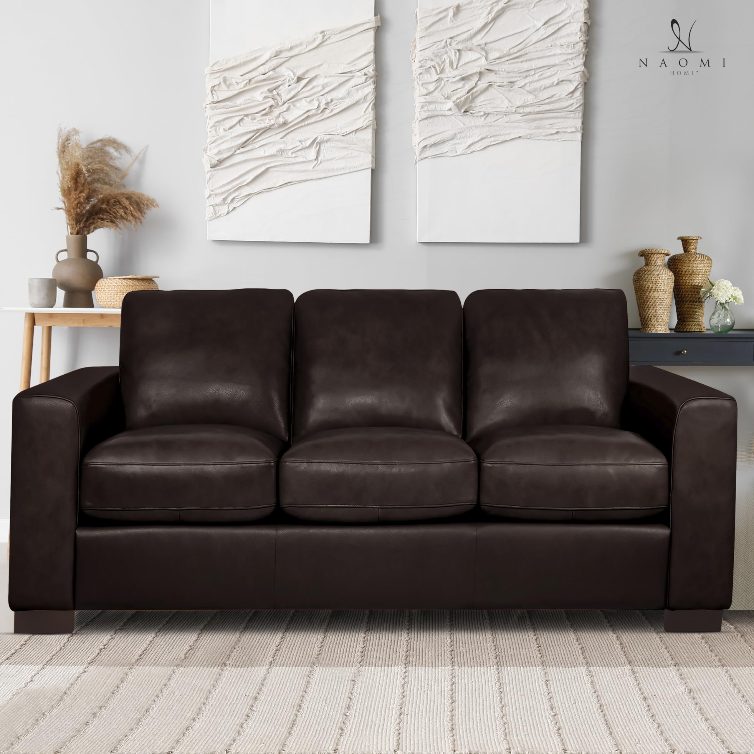 Amazon Naomi Home Freya Genuine Leather Sofa Luxurious Comfort Goose Feather Cushion Filling Square Arm Design Sturdy Block Legs Elegant Espresso Ideal for Living Room Office or Bedroom Home Very well made.