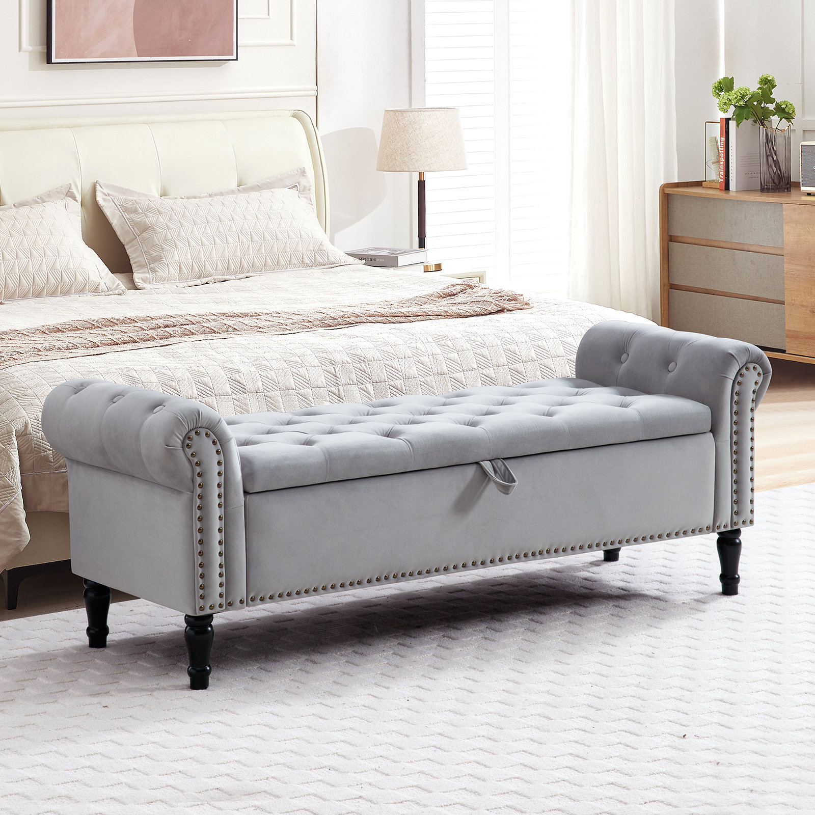 Upholstered Velvet Storage Bench for Bedroom End of Bed with Button Tufted Seat and Roll Arms Red Barrel Studio Upholstery Color Gray Very well made.