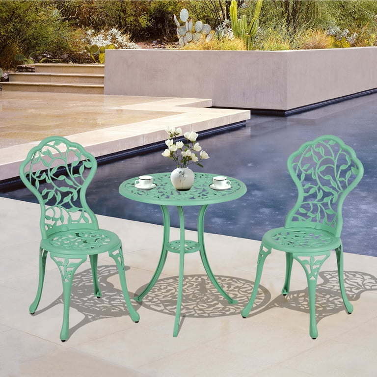 COBANA 3 Piece Patio Bistro Table Set Outdoor Cast Aluminum Dining Retro Table and Chairs Mint Very well made.