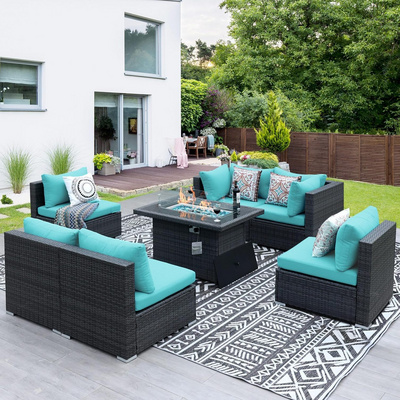 Altovis luxury outdoor seating group PE rattan modern garden furniture sofa set with fire pit table Very well made.