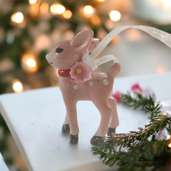 Pink Retro Deer Pink Christmas Reindeer Tree OR Shelf Ornament Vintage Style Ornament Sweet Vintage Design gift Idea Stocking Stuffer Etsy Very well made.