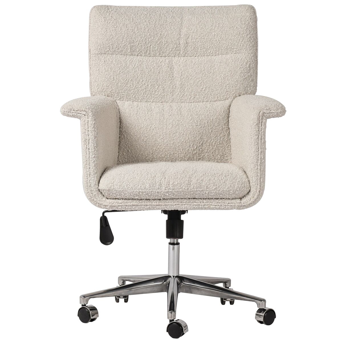 Office Desk Chair No Wheels Comfy Wide Fabric Padded Modern Swivel and Height Adjustable Armless Task Chair Beige Very well made.