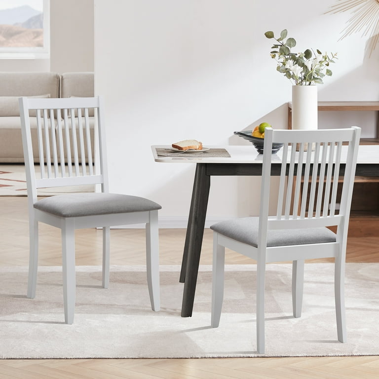 Duhome Set of 2 Farmhouse Dining Chairs White Rubber Wood Kitchen Side Chairs with Upholstered Seat Slat Back Design Walmart Very well made.