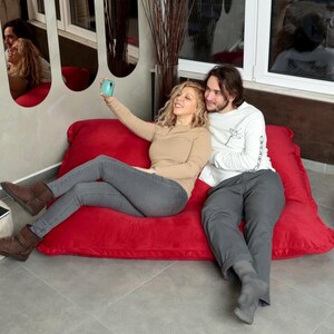Boring Boucle Large Bean Bag Chairs Beige Upholstered Double Bean Bag Chair Bean Bag Couch for Adults and Kids The Pop Home Very well made.