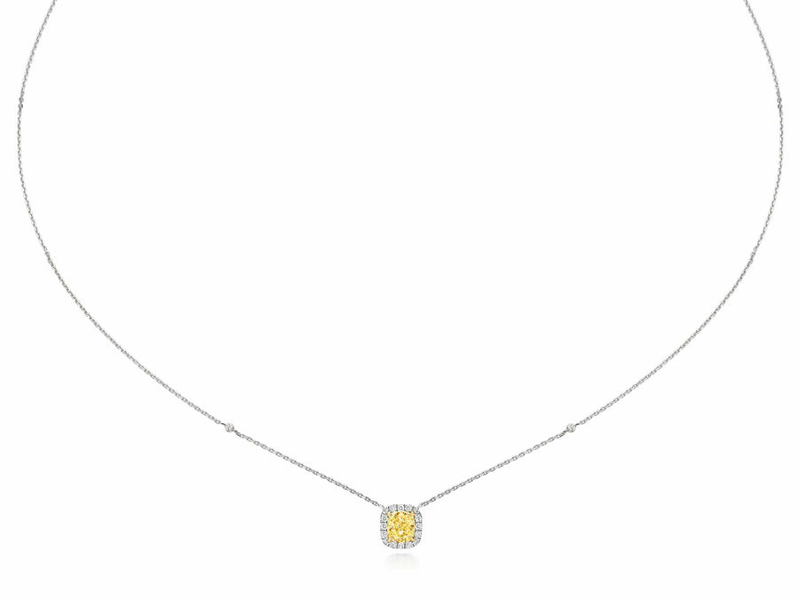 1.20 ct Fancy Yellow Cushion Cut Diamond Necklace Pendant Very well made.
