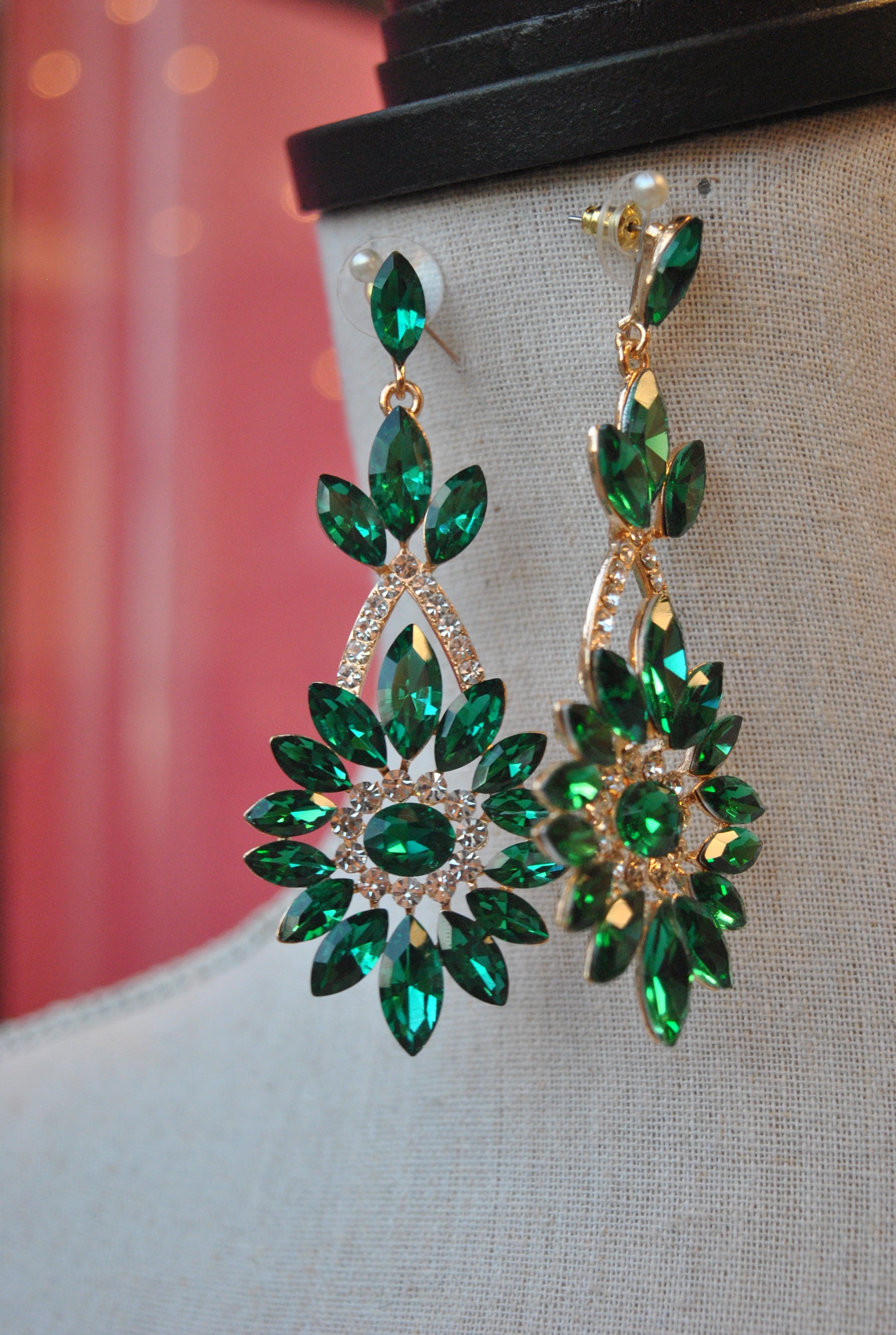 FASHION COLLECTION EMERALD GREEN CRYSTAL STATEMENT EARRINGS Le Obsession Boutique Very well made.