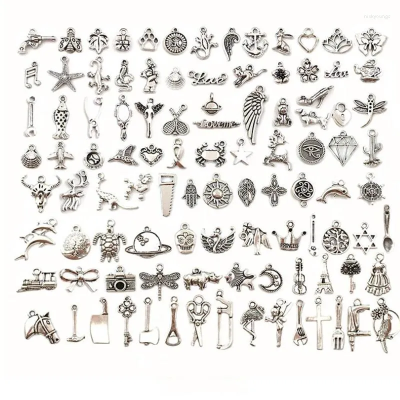 Charms Wholesale Bulk Lots Jewelry Making Mixed Smooth Tibetan Silver Metal Pendants DIY For Necklace Bracelet 100 PCS 7 25mm Very well made.