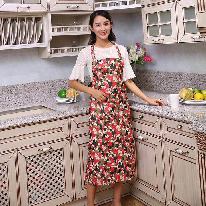 Color camouflage halter aprons for women cooking baking sleeveless pvc waterproof apron with pocket Very well made.
