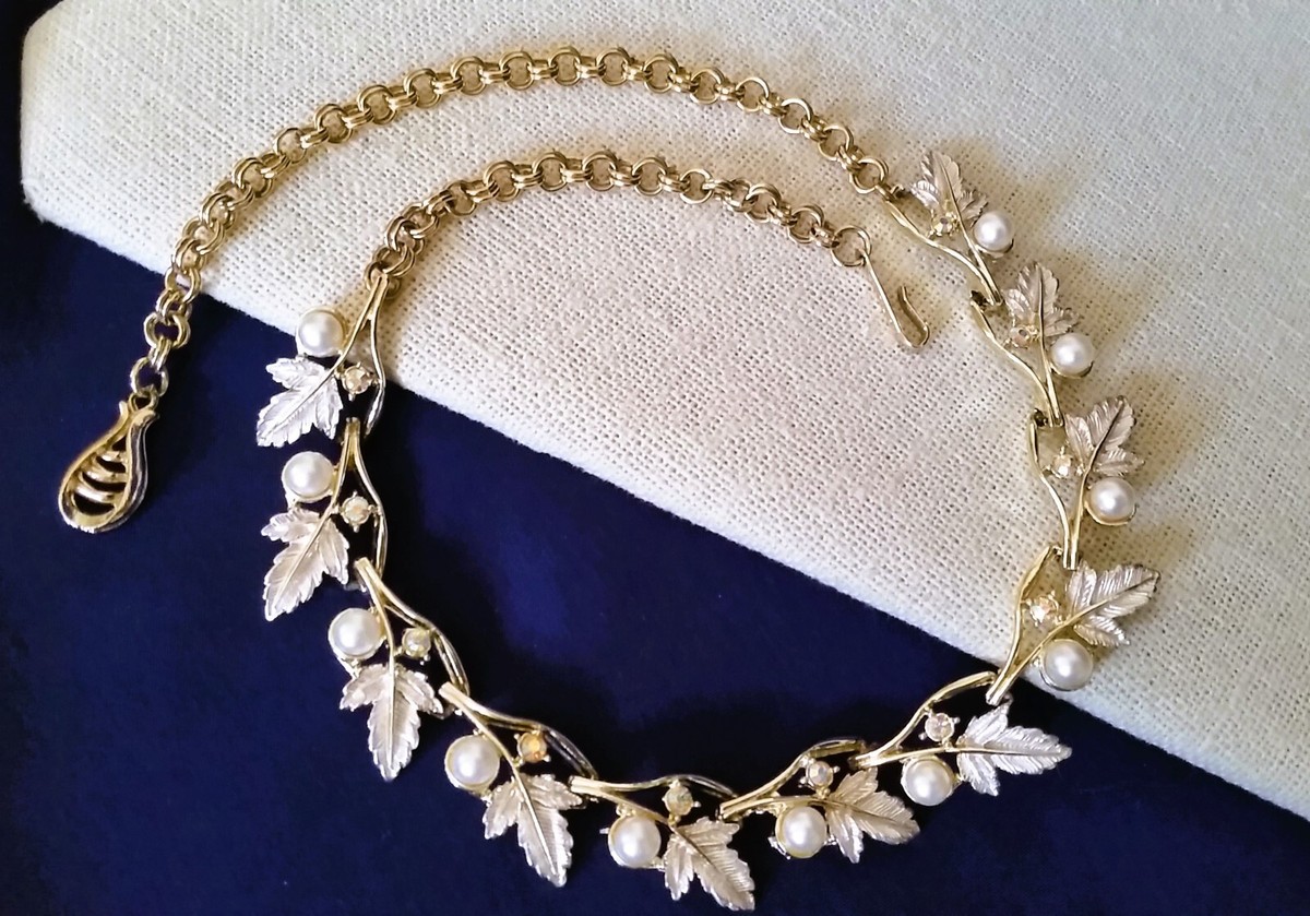Vintage Gold Tone JUDY LEE Classy Leaf Design Rhinestone Faux Pearl Necklace 16 eBay Very well made.
