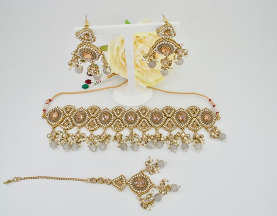 Gold With Grey Necklace Set Reverse AD Choker Necklace Set With Tikka Indian Necklace Set Indian Jewellery Pakistani Jewellery Etsy Very well made.
