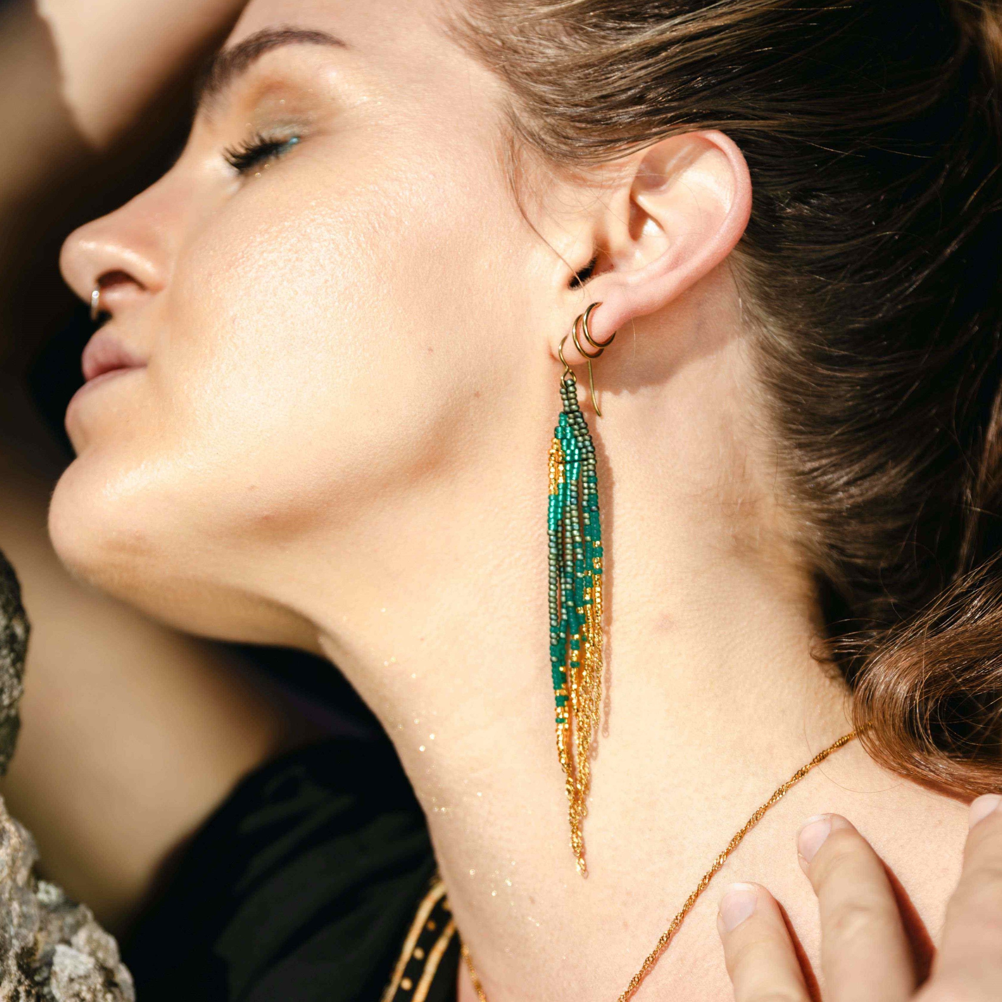 Tropical Teal Handmade Beaded Tassel Earrings Ciao Bella Very well made.