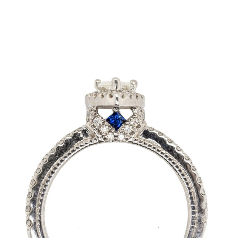 Zales Vera Wang Love Collection 1 2 CT. T.w. Oval Diamond and Blue Sapphire Frame Engagement Ring in 14K White Gold Liberty Center Very well made.