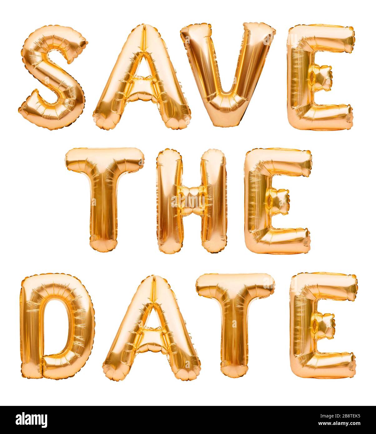 Golden words SAVE THE DATE made of inflatable balloons isolated on white background. Gold foil balloon letters. Wedding day love celebration concept Stock Photo Alamy Very well made.