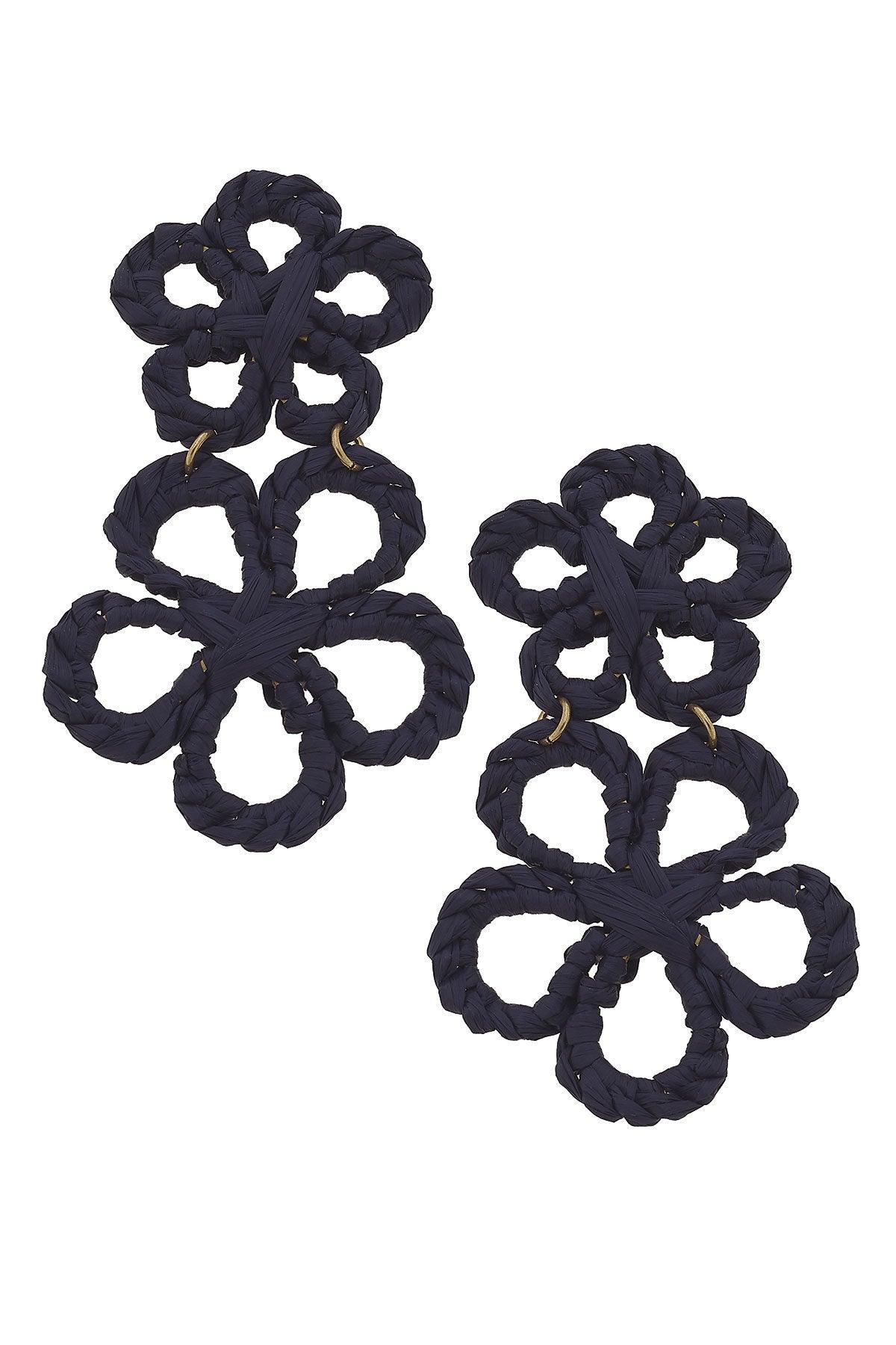 Tahiti Raffia Statement Earrings in Navy Canvas Style Very well made.