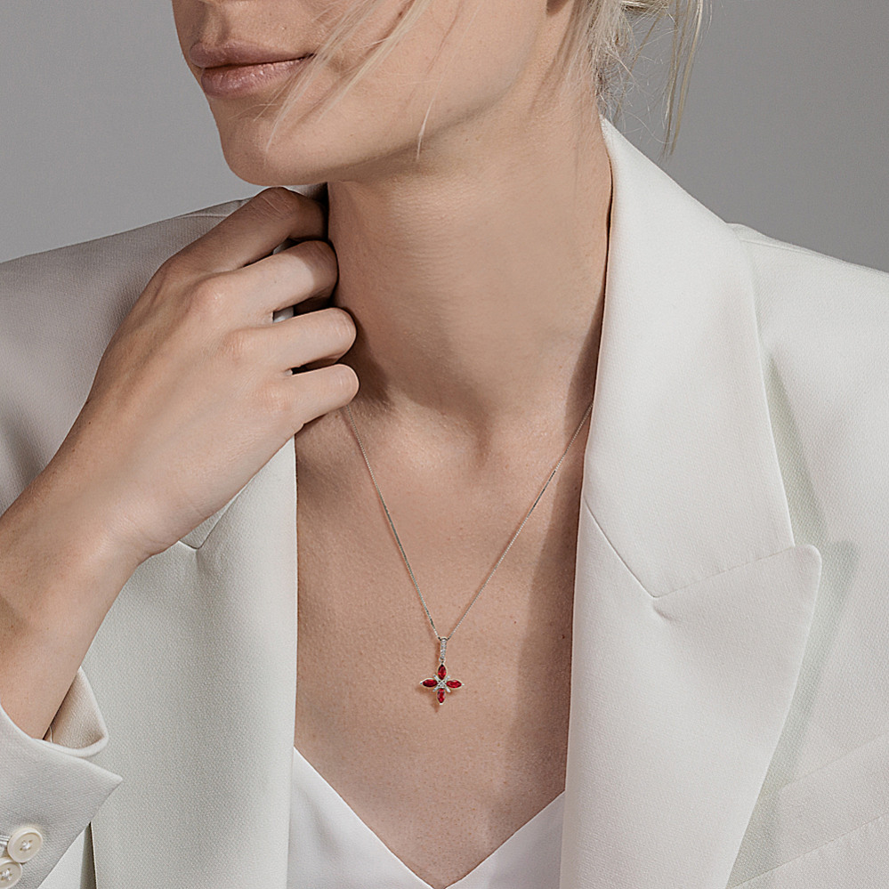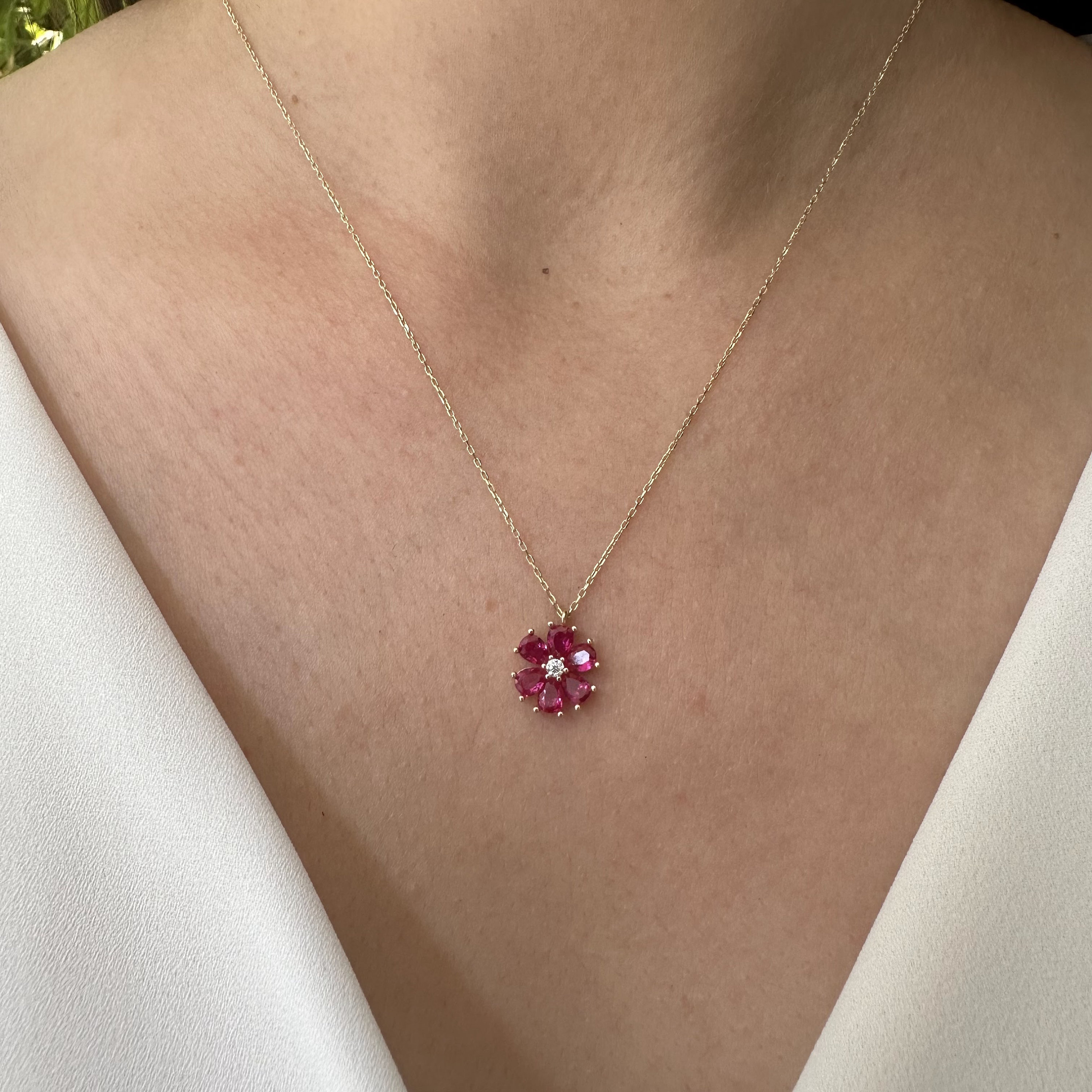 Ruby Diamond Flower Pendant Necklace Very well made.